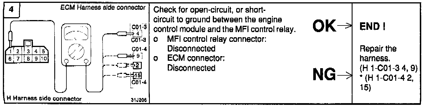 4. if one of the above is improper, replace the MFI control relay.