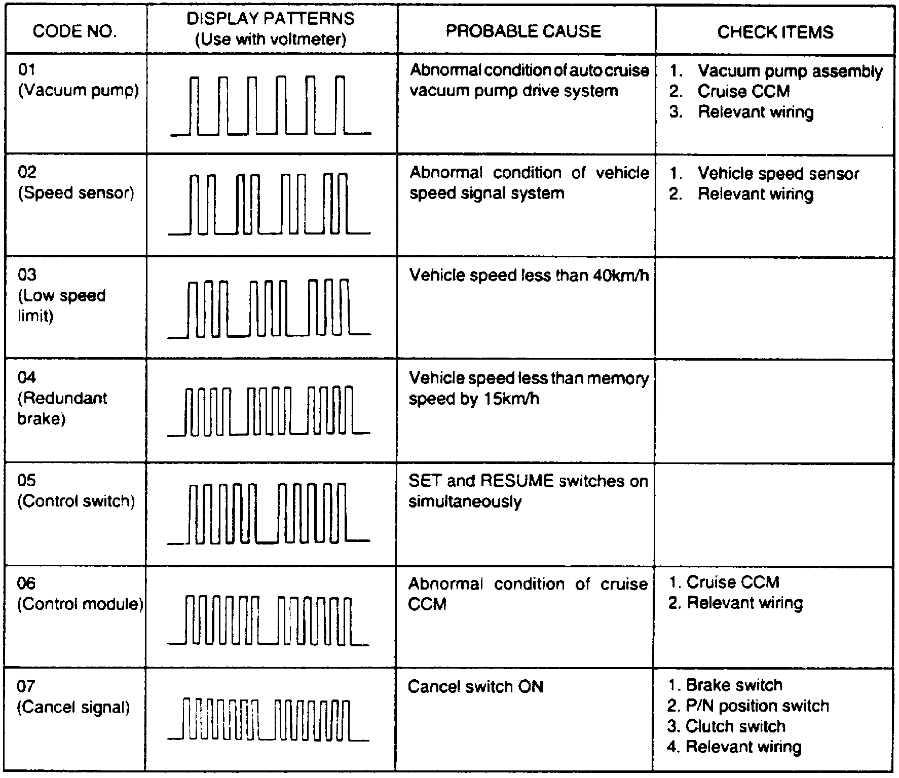 Fig. 6 Speed Control Diagnosis Display Patterns & Codes: