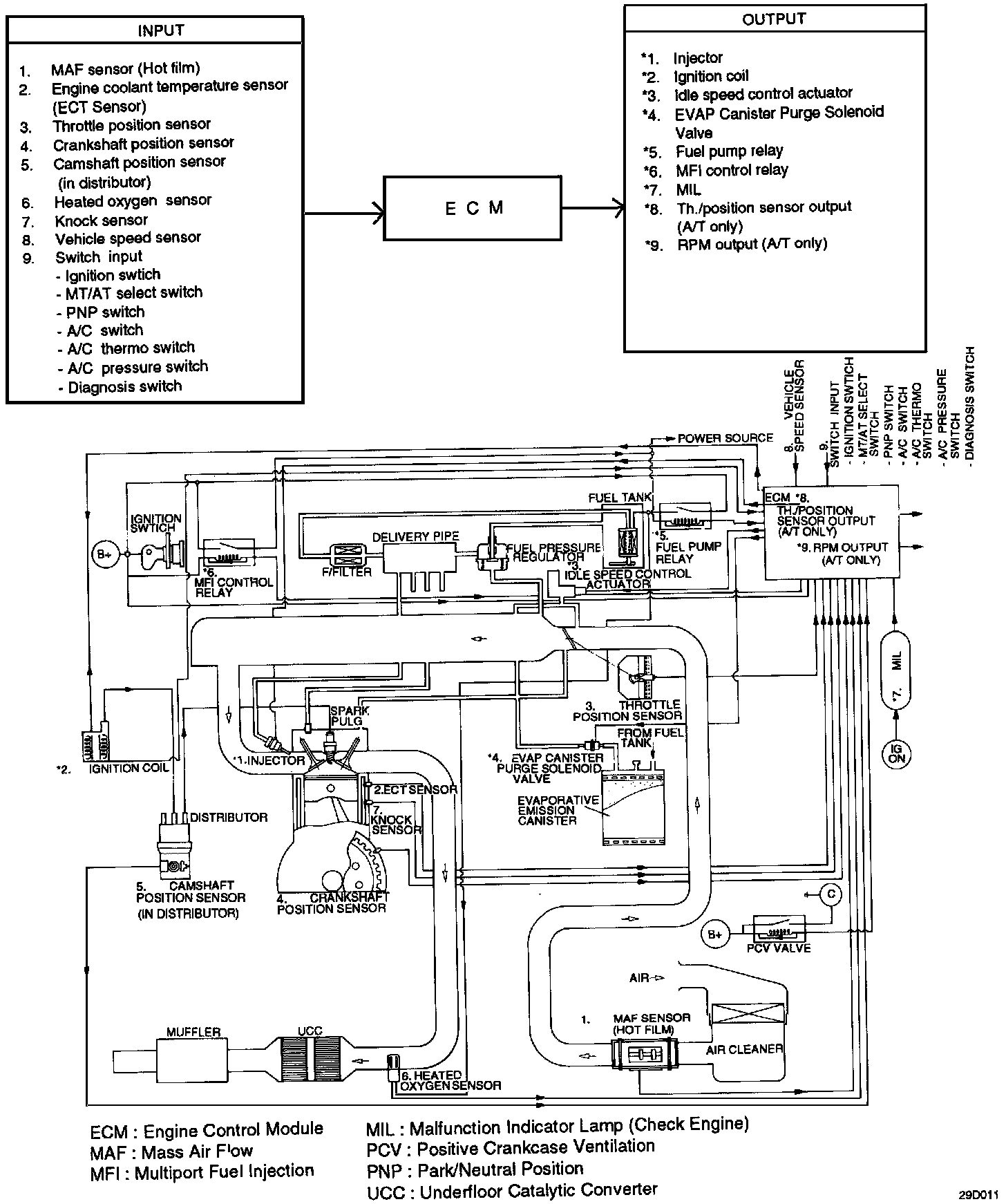 The MFI system is a system which employs the signals from the heated oxygen sensor to activate and control the injector installed in the manifold for each cylinder, thus precisely regulating the air fuel mixture ratio and reducing emissions.