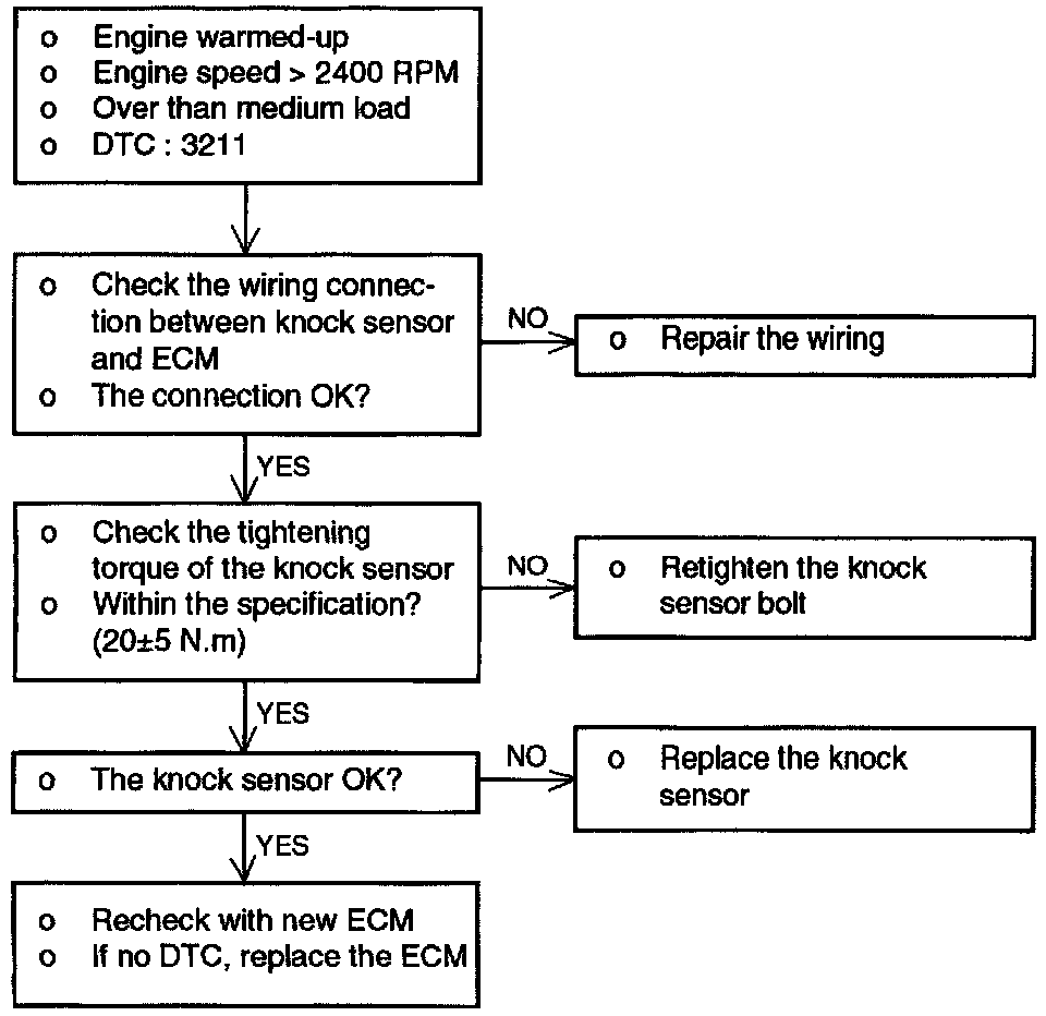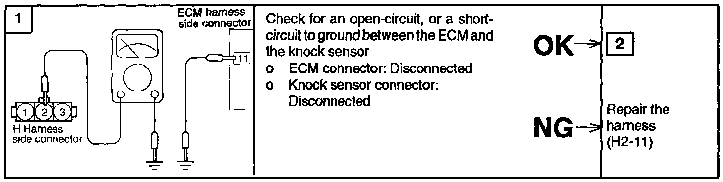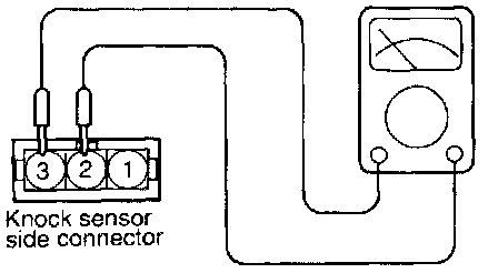 The knock sensor is attached to the cylinder block and senses engine knocking conditions. A knocking vibration from the cylinder block is applied as pressure to the piezoelectric element. This vibrational pressure is then converted into a voltage signal which is delivered as output. It engine knocking occurs, ignition timing is retarded to suppress it.