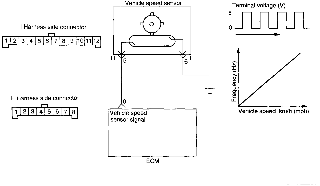 The vehicle speed sensor is a reed switch. The vehicle speed sensor is built into the speedometer and coverts the transaxle gear revolutions into pulse signals, which are sent to engine control module.