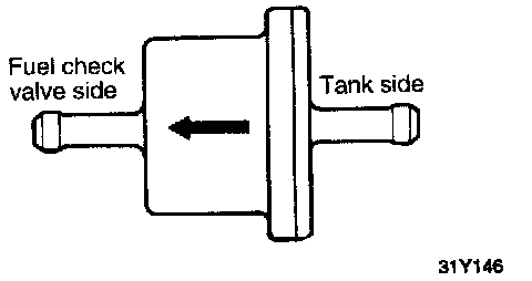 4. Connect the vapor hose and return hose. When attaching the fuel hose to the line, be sure that the hose is attached as shown in the illustration.