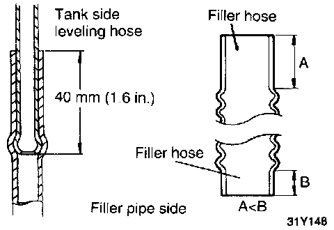 2. Connect the leveling hose to the tank and approximately 40 mm (1.6 in) at the filler neck.