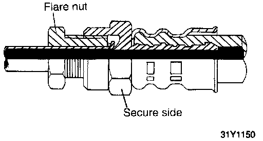 CAUTION: When tightening the flare nut, be careful not to bend or twist the line to prevent damage to the fuel pump connection.