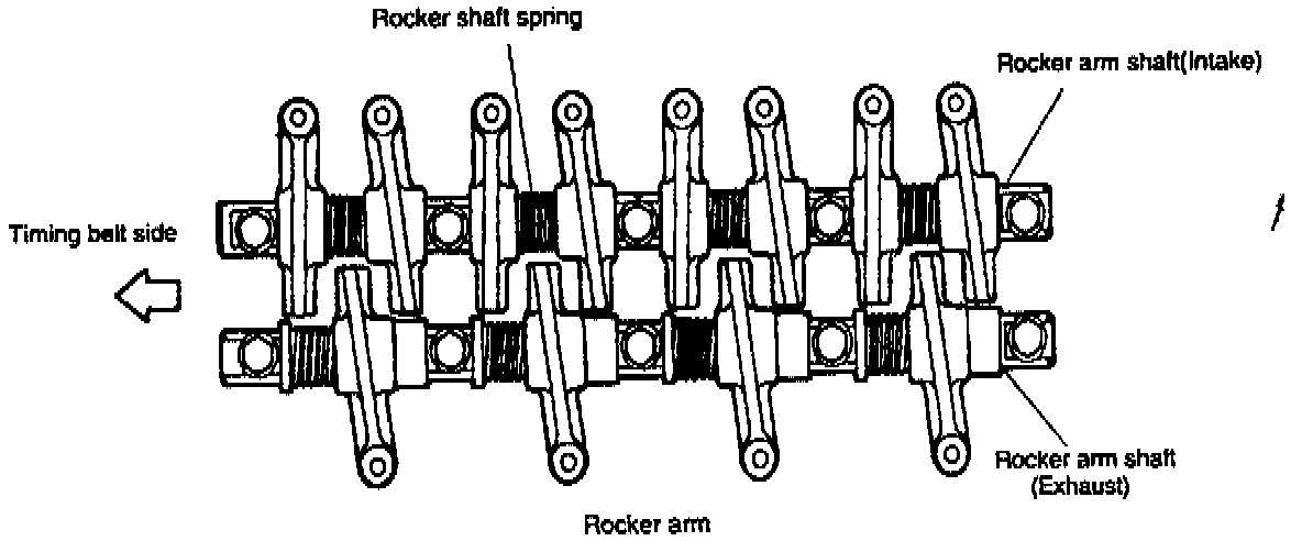 The rocker arms have been changed from contact type to roller type to reduce friction between the camshaft and rocker arms.
