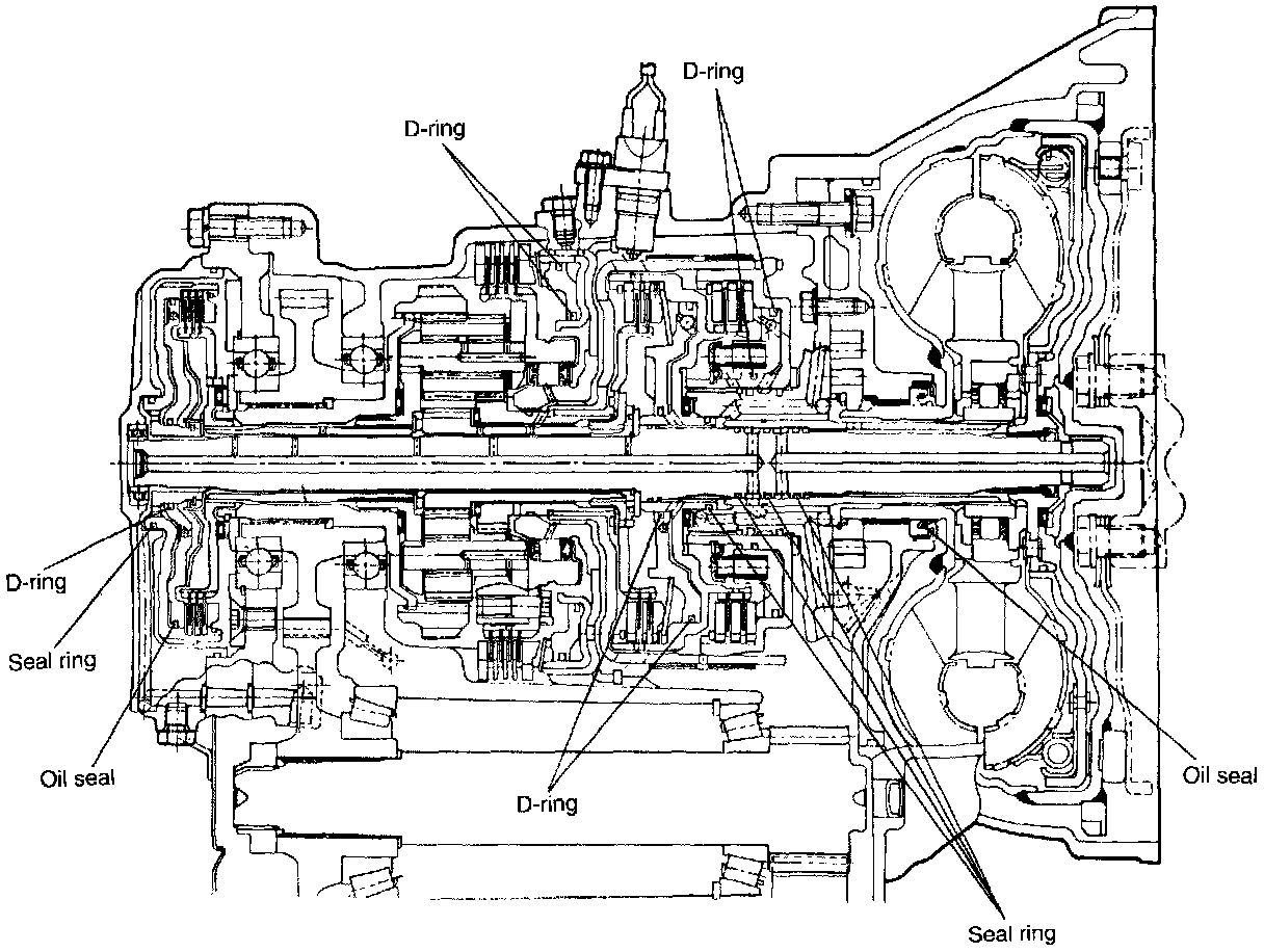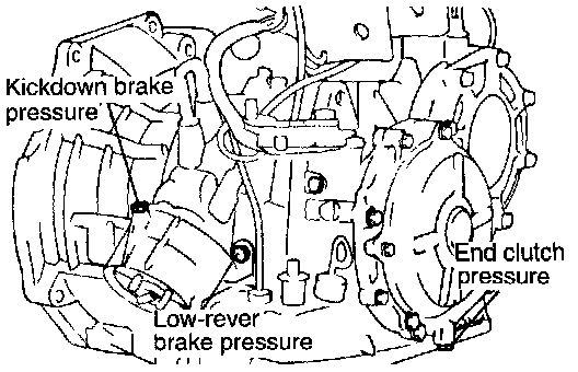 4. Attach the special oil-pressure gauge (09452-21500) and the adapter (09452-21002) to each oil-pressure outlet port. When the reverse pressure is to be tested, the 3,000 kPa (400 psi) type of gauge should be used.