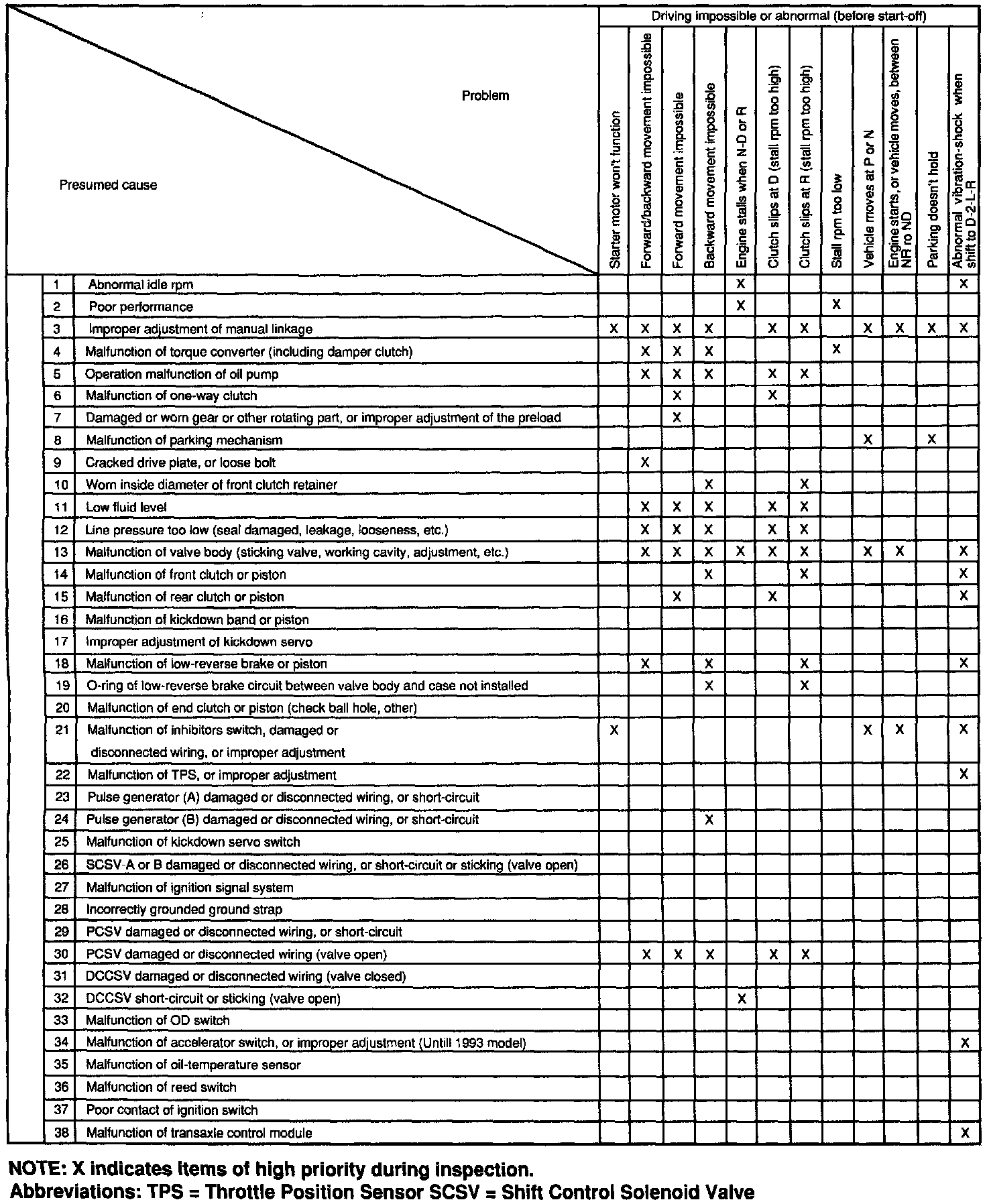 Malfunctions of the auto transaxle can lead to other problems, such as those described below: