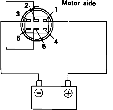 4. Connect positive lead from battery to terminal 1. Ensure motor stops running at Off position after motor operates again.