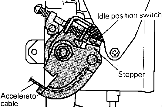 5. Confirm that the throttle lever stopper touches the idle position switch.