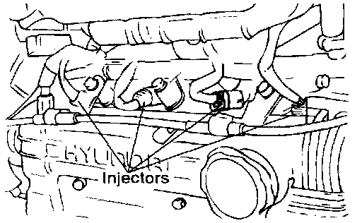 The fuel injectors are solenoid operated valves installed in the intake manifold. The fuel injectors spray a metered amount of highly atomized fuel into the engine intake system to maintain proper air/fuel ratio and promote efficient combustion.