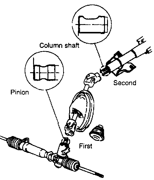 1. Remove the coupling and universal joint from the steering column and shaft assembly.