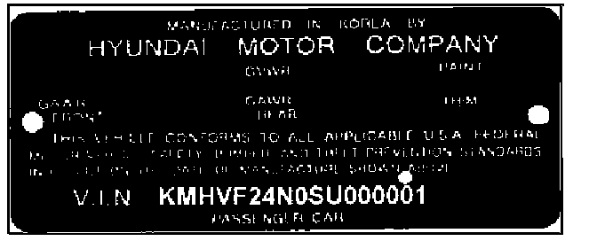 4. Place a punch mark over the 16th digit on the VIN plate located on the drivers door to indicate that this campaign has been completed.