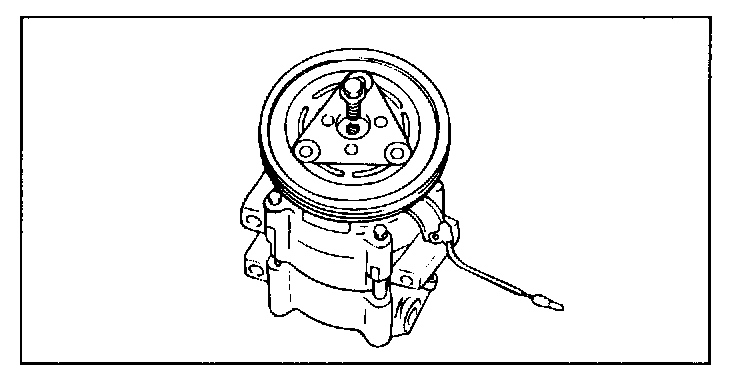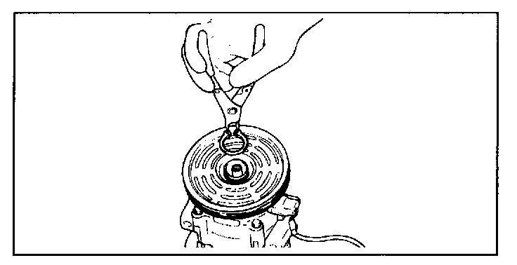 2. Pull the clutch hub and shims from the compressor shaft. If the hub cannot be pulled from the compress shaft, screw an 8mm bolt into the shaft hole of the clutch hub to force the hub from the shaft.