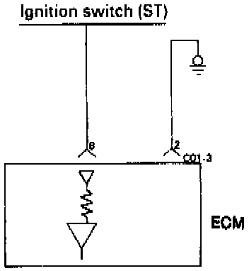 3. Turn the key to the OFF position and check for continuity between engine control module harness connector terminal 2 and ground.