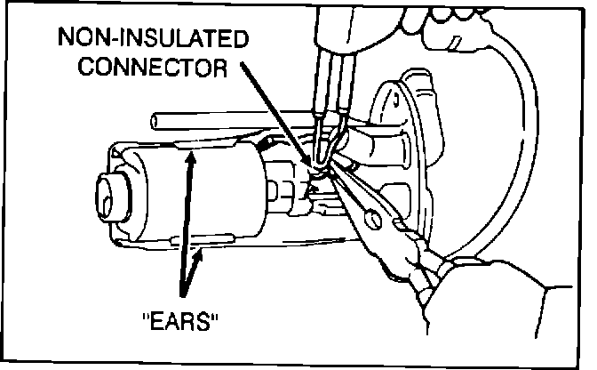 NOTE: The non-insulated connector connects to the negative (-) terminal of the fuel pump. The insulated connector connects to the (wider) positive (+) pump terminal.