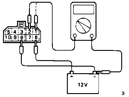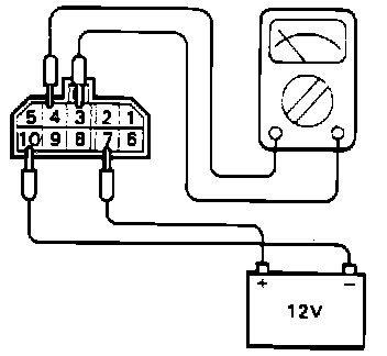 2. Supply 12 Volts to relay terminal 7 and ground terminal 10. Using an ohmmeter, check for continuity between terminals 3 and 4.