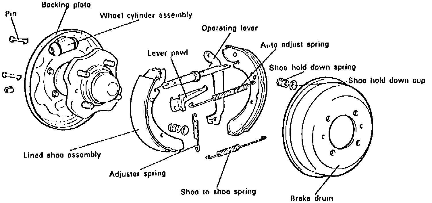 1. Raise and support vehicle, then remove wheel/tire assembly.Exploded View Of Drum Brake Assembly:
