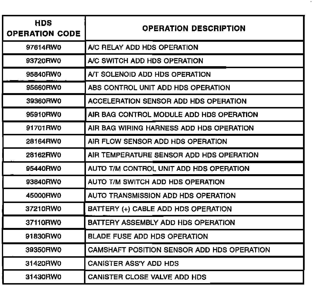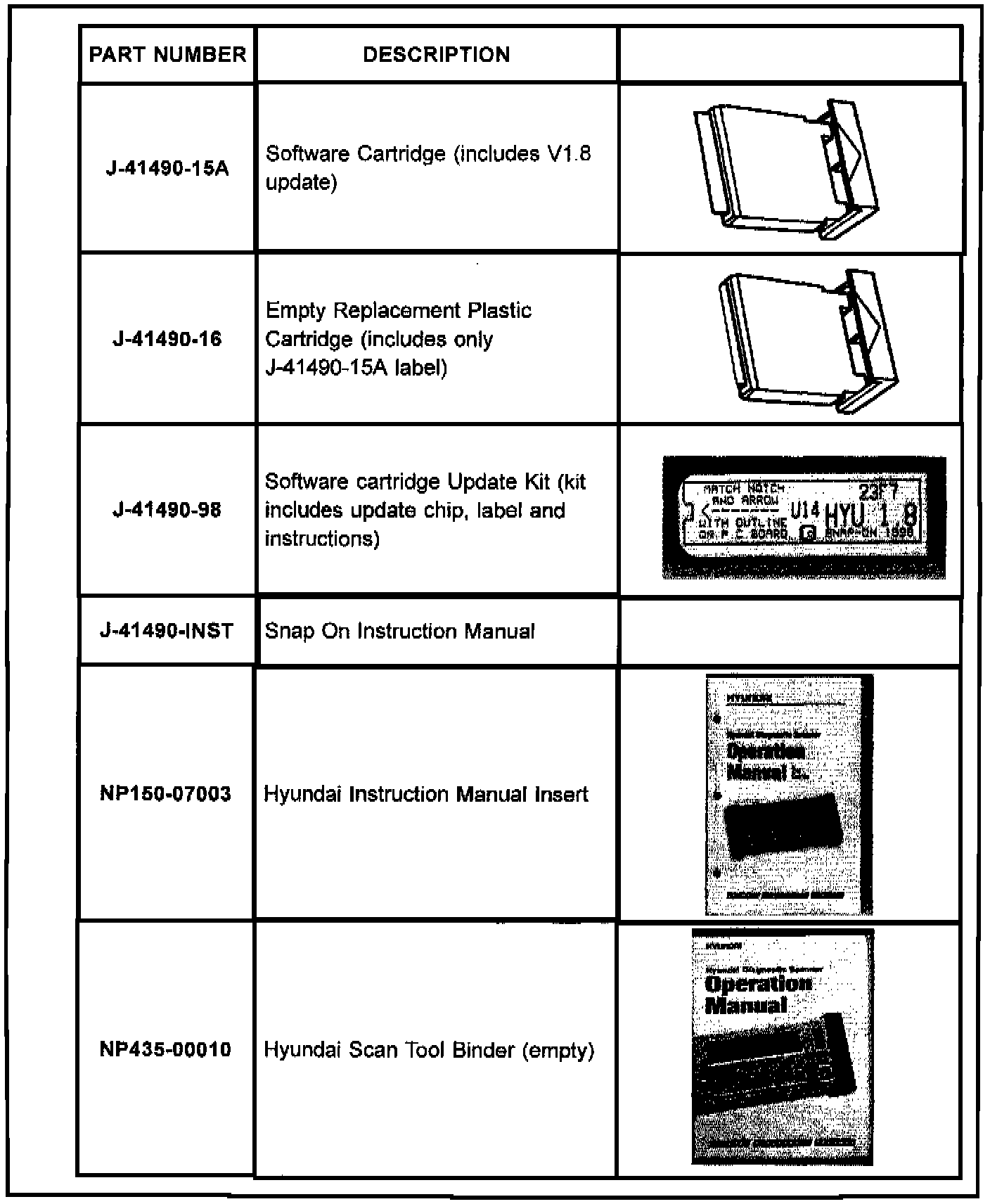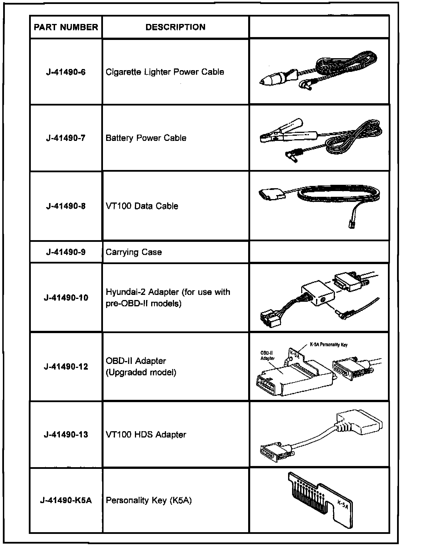 Shown is a list of replacement part numbers for the HDS scan tool. To order any of the items listed, contact Kent-Moore at 1-800-345-2233.