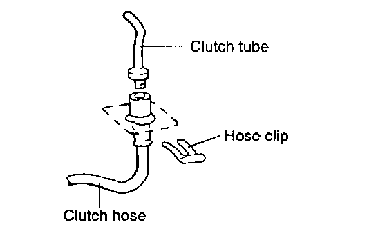 7. Remove the clip from the clutch hose and remove the hose from the bracket.