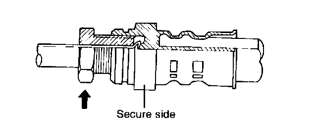 6. Hold the nut on the clutch hose and loosen the flare nut on the clutch line.