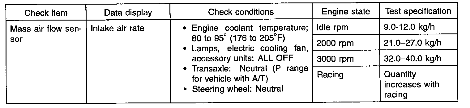 NOTE: When the vehicle is new (within initial operation of about 500 km -300 miles-), the mass air flow sensor air quantity may be about 10% higher.