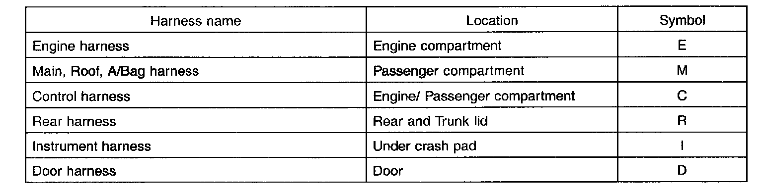Electrical wiring connectors are classified according to the wiring parts in the Harness Layouts.