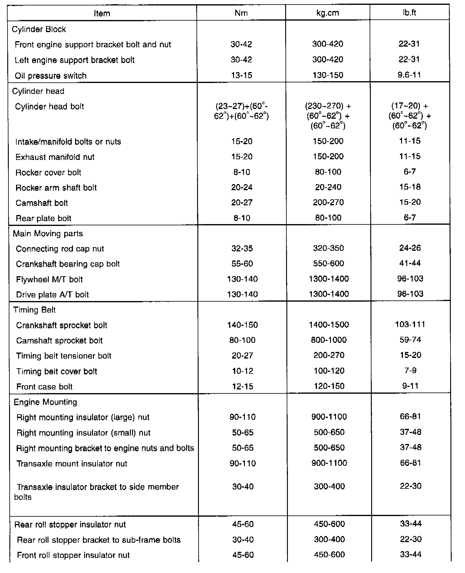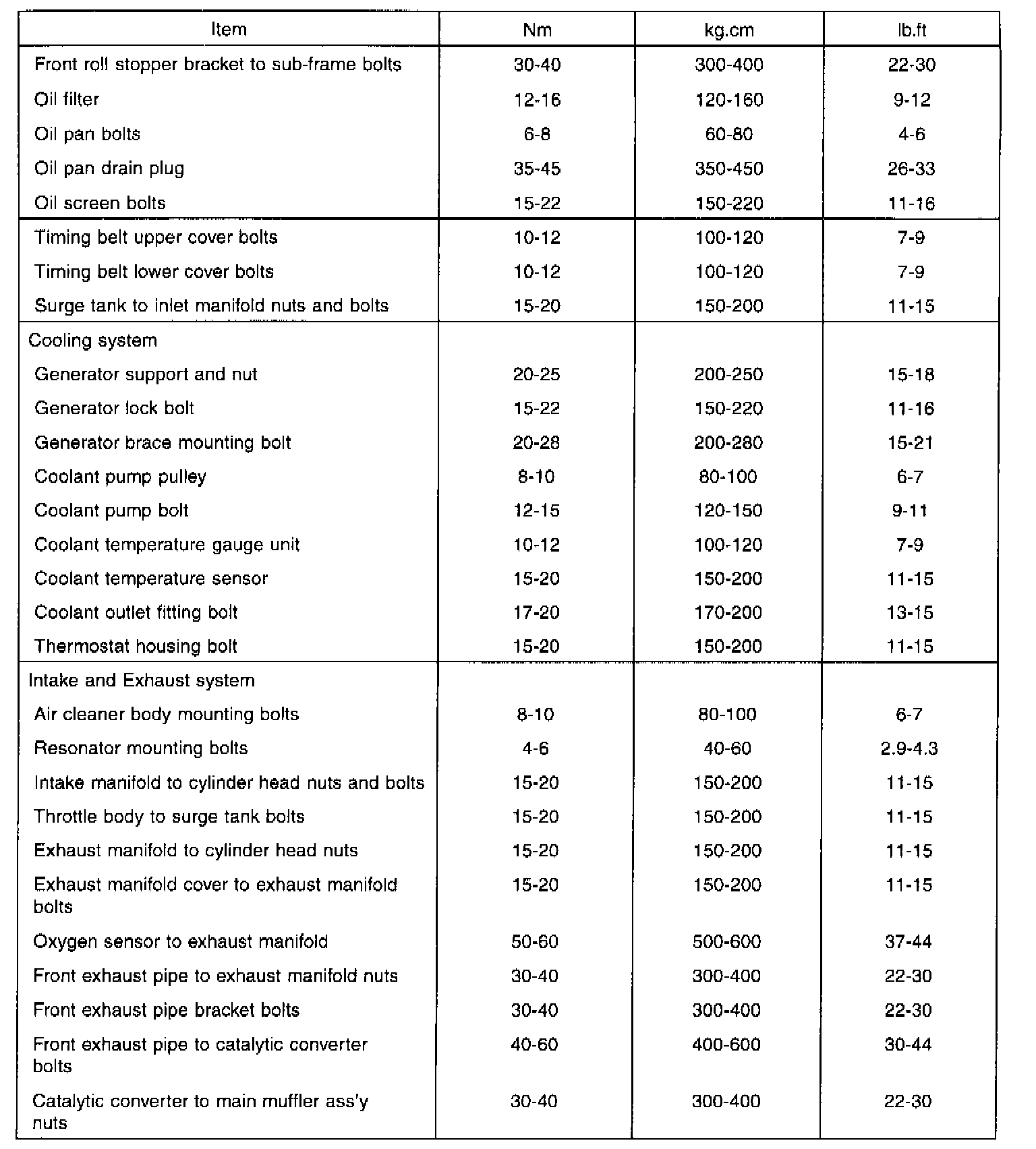 General Torque Specifications