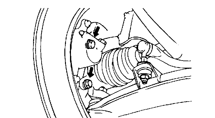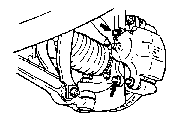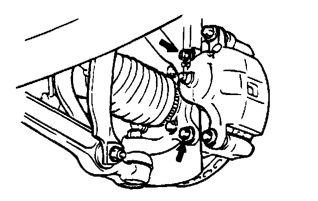 3 Remove the front wheel brake assembly from the knuckle and suspend it with a wire.