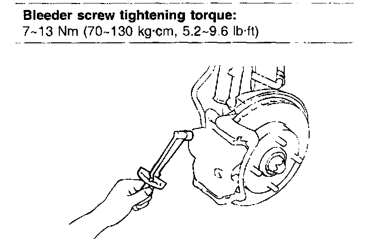 Bleeder screw tightening torque: 7 - 13 Nm (70 - 130 kg-cm, 5.2 - 9.6 ft. lbs.)