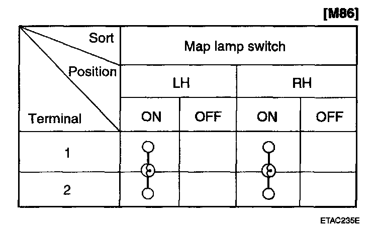 Remove the overhead console and check for continuity between terminals with the connector disconnected.