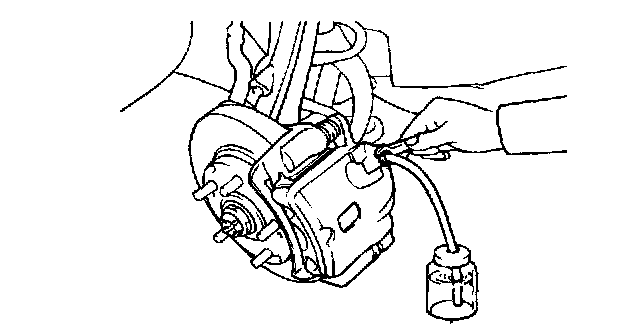 5. While depressing the brake pedal fully, loosen the bleeder plug until fluid runs out. Then close the bleeder screw and release the brake pedal.