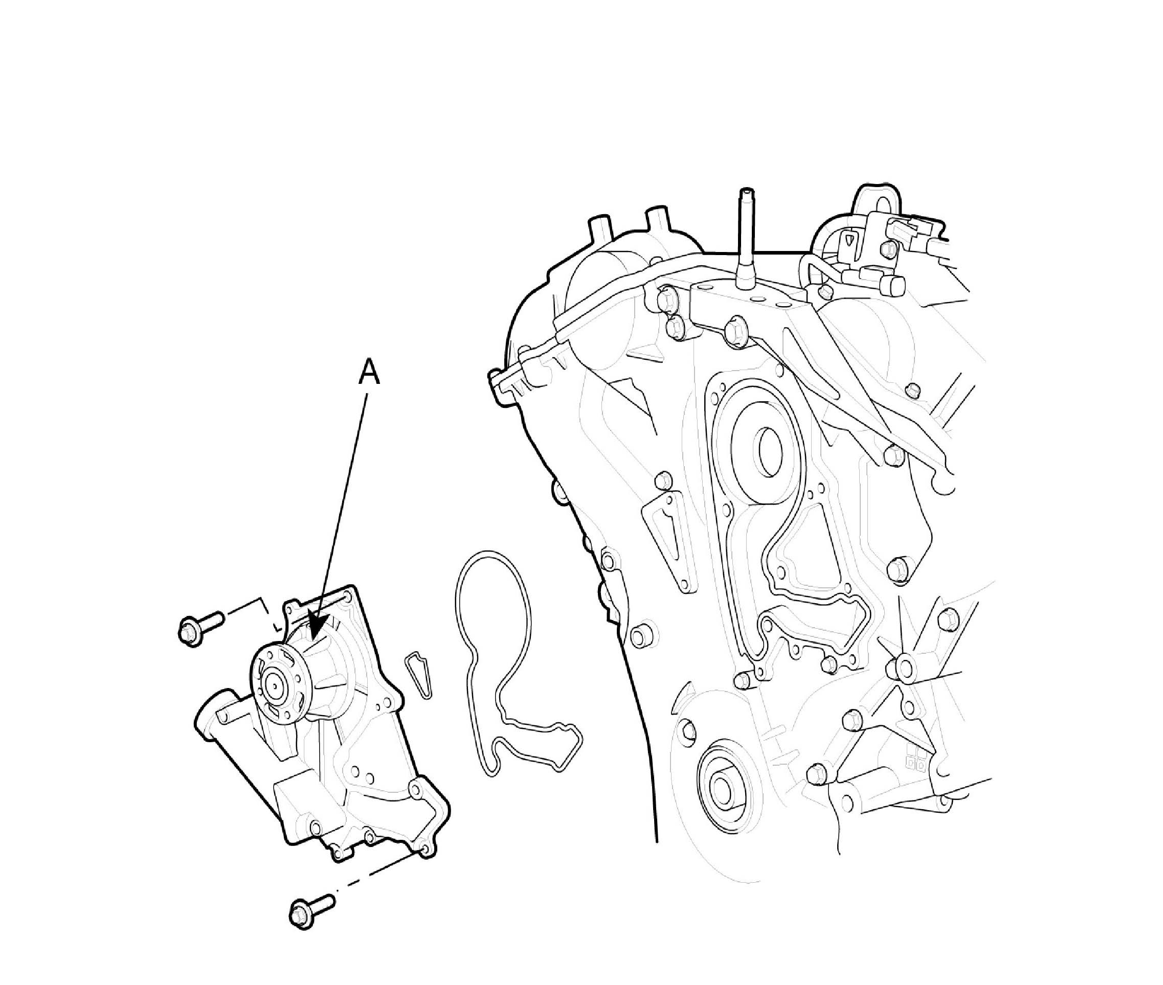 4. Remove the water pump (A) and gasket.