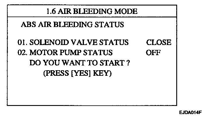 BLEEDING OF BRAKE SYSTEMThis procedure should be followed to ensure adequate bleeding of air and filling of the ABS unit, brake lines and master cylinder with brake fluid.