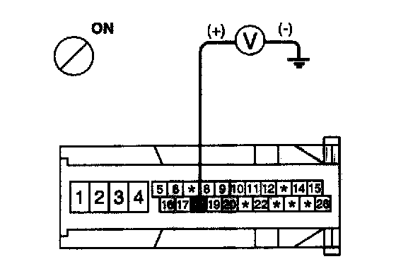 2. Turn the ignition switch ON, measure the voltage between terminal 18 of the ABS control module harness side connector and body ground.