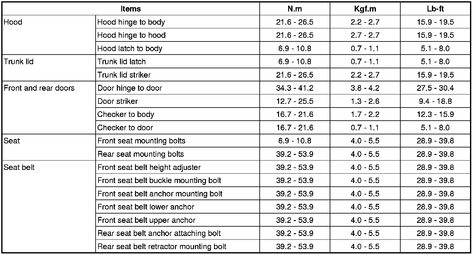 Tightening Torques
