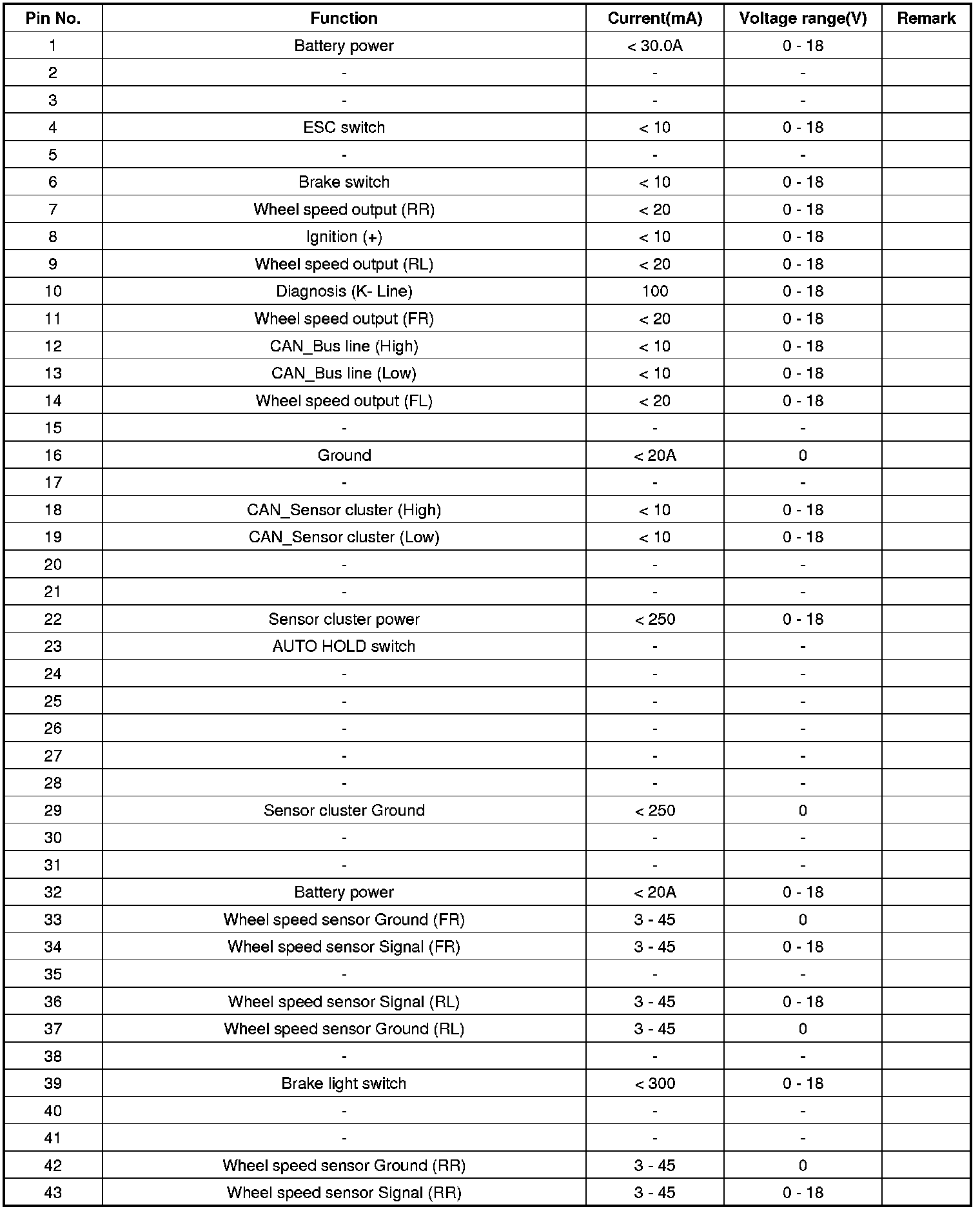 ESC Connector Input/Output