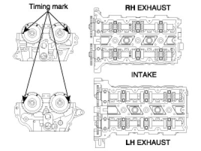 Before removing the timing chain, mark the RH/LH timing chain with an identification based on the location of the sprocket because the identification mark on the chain for TDC (Top Dead Center) can be erased.