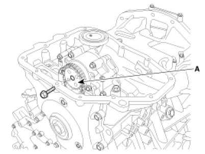 2. Install the oil pump sprocket (A) and the oil pump chain on the oil pump.