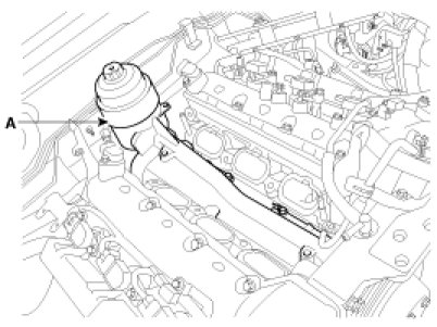 3. Wait for 5 minutes after loosening the oil filter cap to drain well the oil in the oil filter.