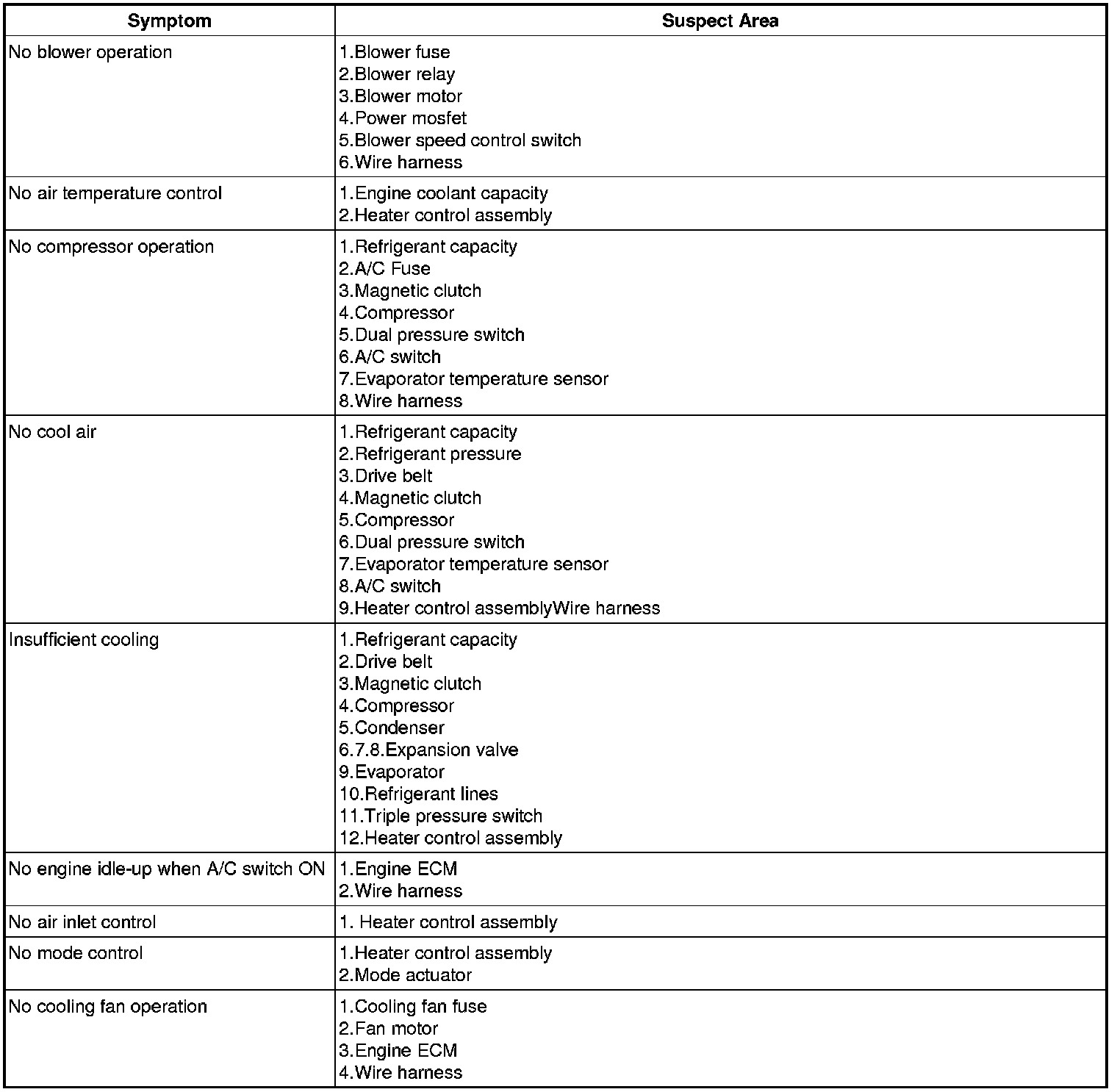 Use the table below to help you find the cause of the problem. The numbers indicate the priority of the likely cause of the problem. Check each part in order. If necessary, replace these parts.