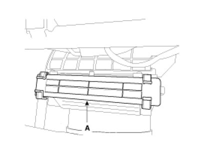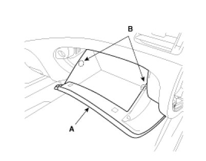 1. Open the glove box (A). Lower the glove box down completely by removing the glove box stopper (B) to the glove box.