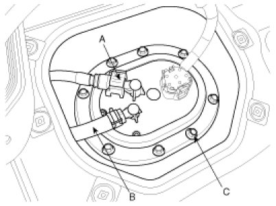 3. Remove the fuel pump from the fuel tank after removing the installation bolts (C).
