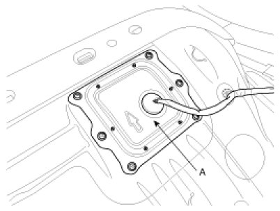 13. Detach the parking brake cable (A) from the fuel tank [Except Electric Parking Brake system].