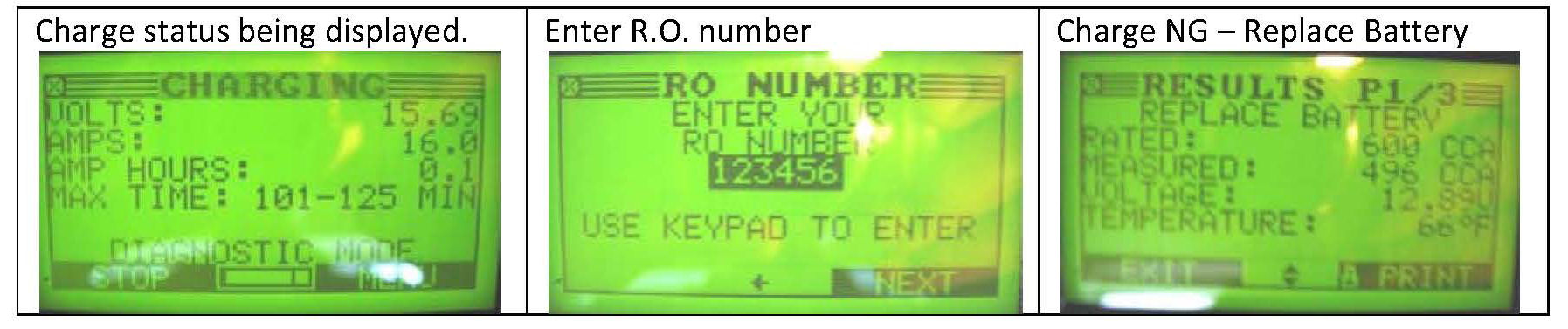 When the Diagnostic Charge results in "Good Battery" you must attach print tickets of the results from both Battery Test with the "Charge & Retest" result and the Diagnostic Charge "Good Battery" result per example of "Print Ticket # B".