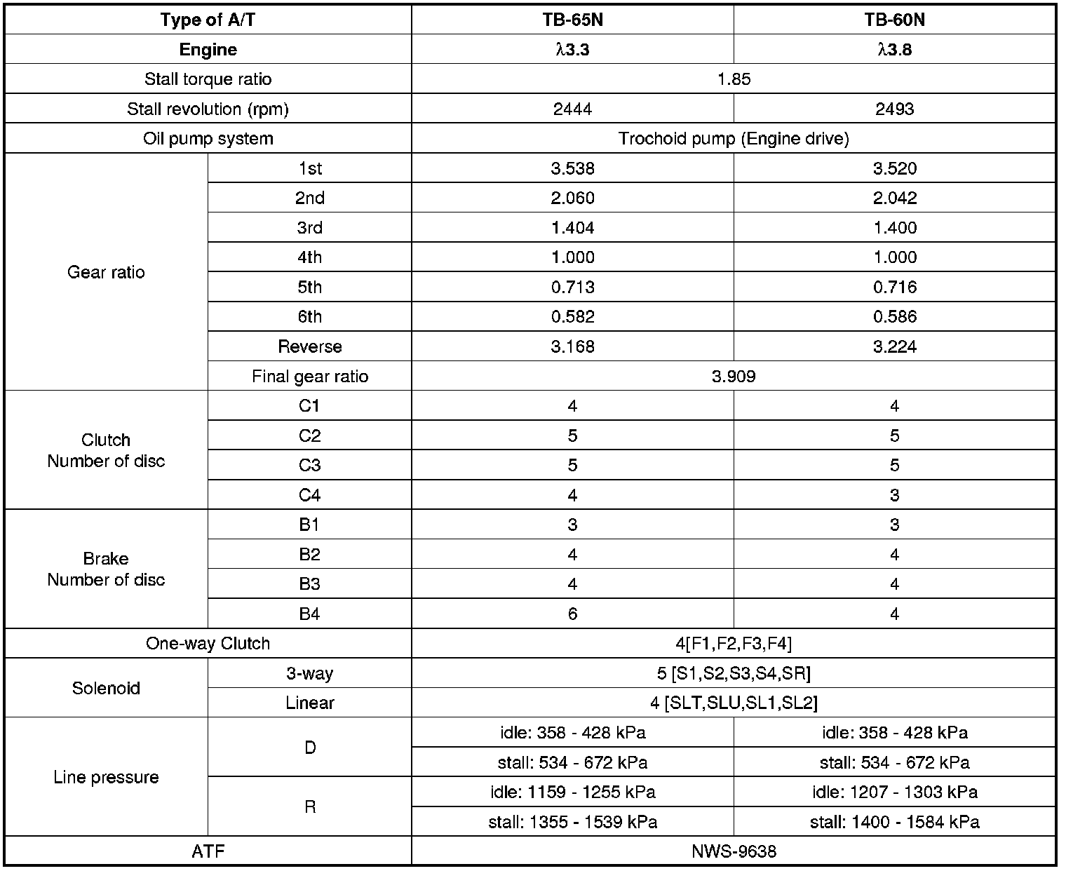 Automatic Transmission/Transaxle: Application and ID: Specifications