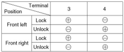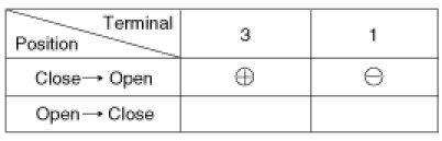 3. Check actuator operation by connecting power and ground according to the table. To prevent damage to the actuator, apply battery voltage only momentarily.