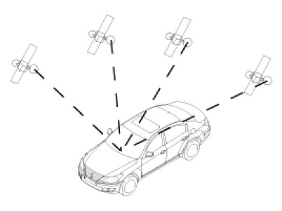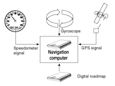 The position and movements of the vehicle are recorded by the navigation system's sensors. The distance travelled is determined by the vehicle speedometer signal, rotary motion in bends is detected by a gyro sensor (inertial compass). The position is determined via the GPS (Global Positioning System) satellites. The position can be calculated within a range of approx. 10 m by comparing the sensor signals with the digital map on the navigation CD.