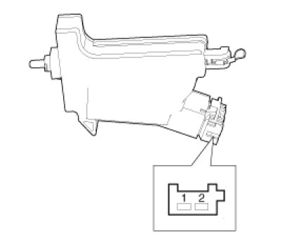 4. Check for continuity between terminal No.1 and No.2. If there is no continuity replace the fuel filler door opener.