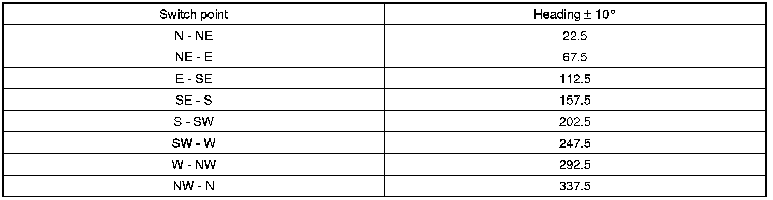 Switch points between the 8 cardinal directions, these switch points are ± 10°