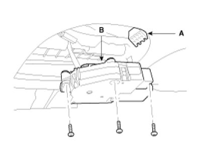 2. Disconnect the motor connector (A), remove the screws and then remove the motor (B).